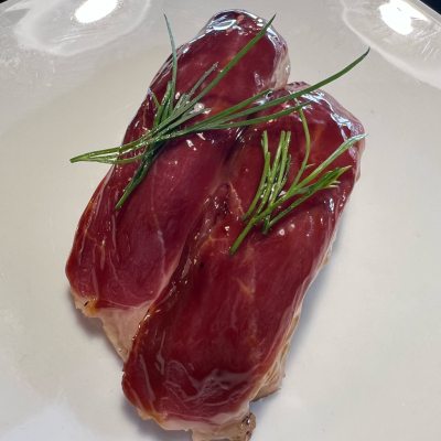 Canard, sauce tatayaki, riz vinaigré, aneth