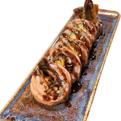 Saumon, Anguille, Avocat, Mangue, Sésame, Riz Vinaigré, Algue
