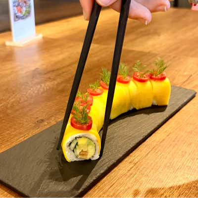 Mangue, concombre, avocat, omelette, inari, cheese, tomate, riz vinégré, algue 8pcs