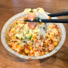 Thon, avocat, mangue, tomate, mayonnaise, mozzarella, oignons sec, ciboulette, riz vinaigré, sauce tataki